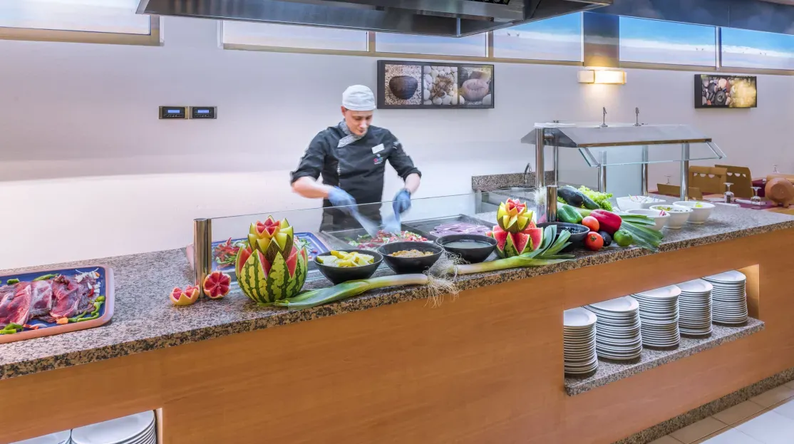- Restaurant buffet proposant cuisine méditerranéenne et internationale.