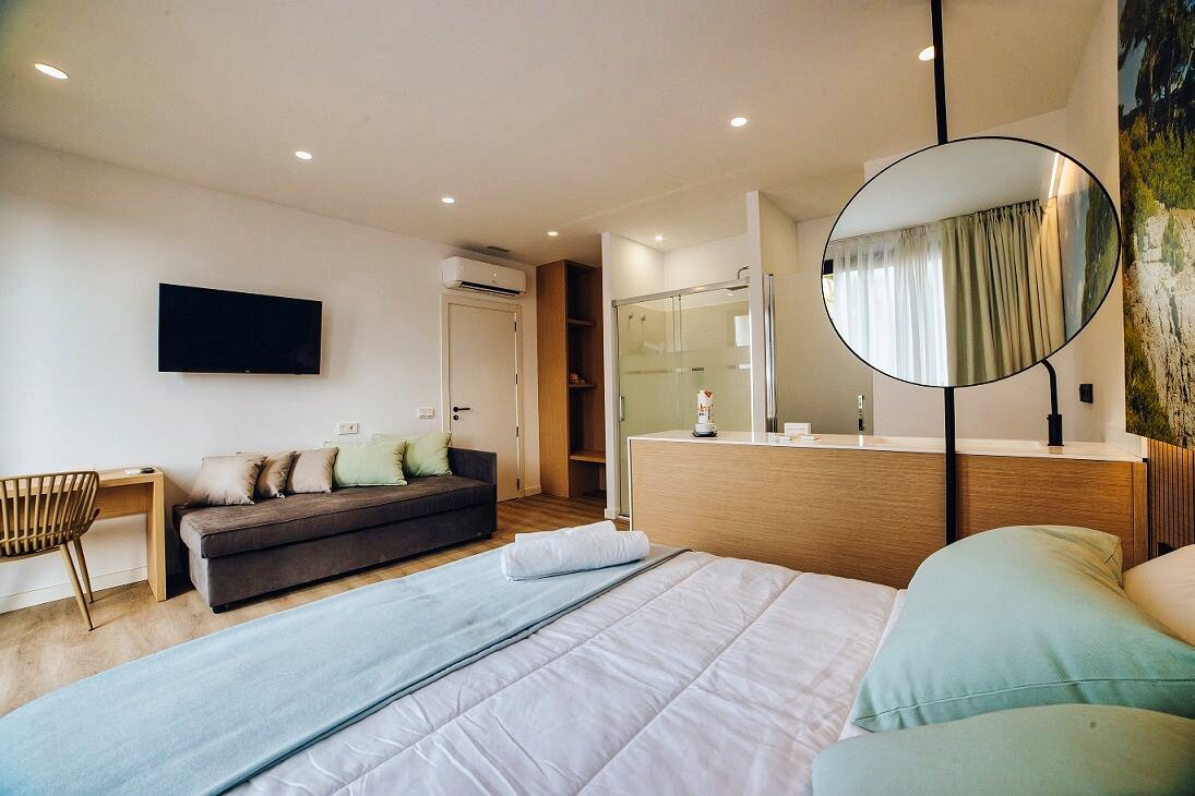 Les chambres sont conçues pour le confort : frigo, machine à café, Smart TV, nettoyage quotidien.