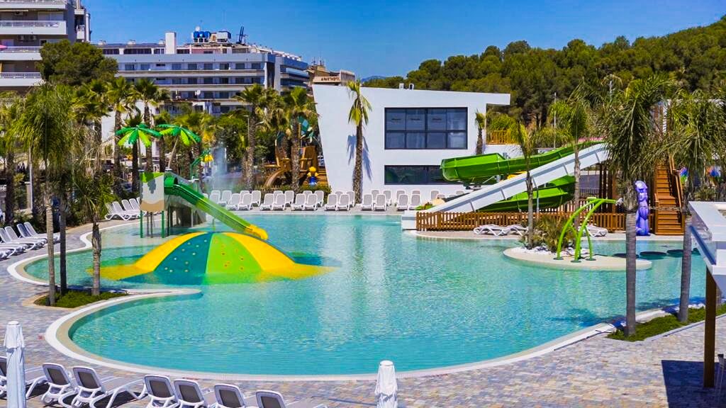 - Piscine extérieure, parc aquatique, toboggans légers — pour alterner détente et mini activités.
